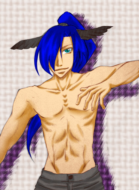 描きやすいように、ってやったら半裸になるのよね。手を描きたかったってだけでポーズはイミフ。