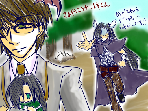 みーたん宅にお邪魔した時に、ボカロのカンタレラを歌ってみた時に、動画用に半日で描いたもの。最初描いたときはアニトキの配置が逆だったとかなんとか。