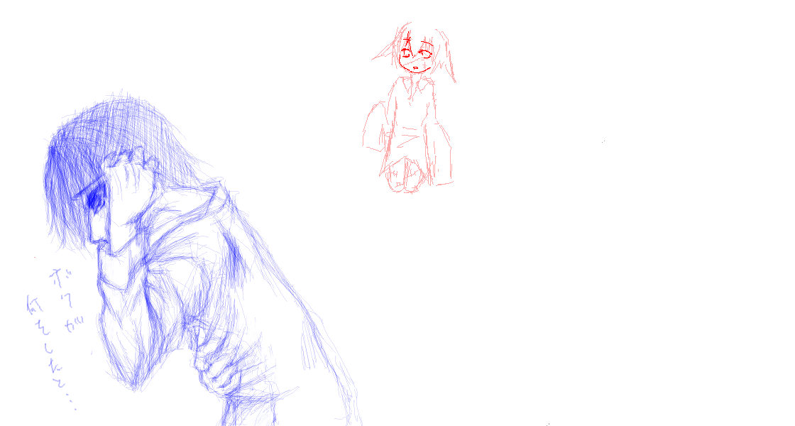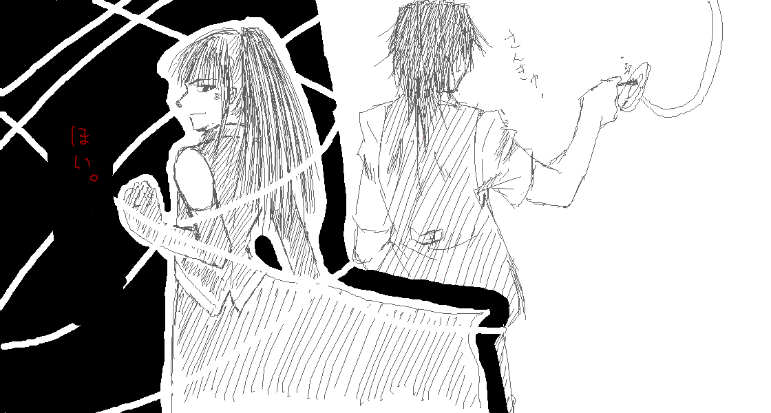 ジョー君のナイフが大変気に入る感じに描けた。ペンタブの上に紙一枚敷くだけでずいぶん違うなぁ。