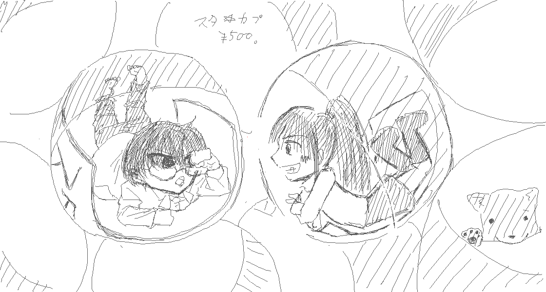しかしデフォルメって描きにくい。バランスがさっぱり分からない。リアルな等身でもいいけど、それはそれで物凄く造詣が小さくなりすぎるからデフォでいいや。