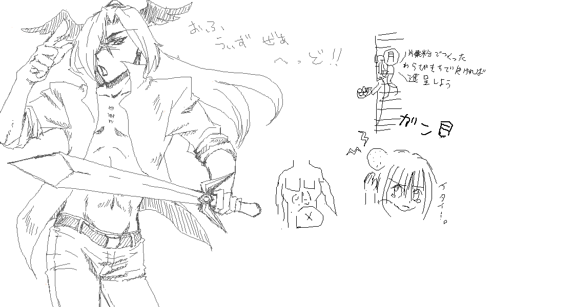 絵茶で軽く綴ちゃん+ミアちゃん&ディアボロス君+ジョー君が会話してましたが、キレたジョー君は遠慮なくディアボロス君をお刺身にしてしまうようです。とりあえず黙らせるには頭に杭だろとか言ってます。それはうなぎに対してですよ、ジョシュ・・・。