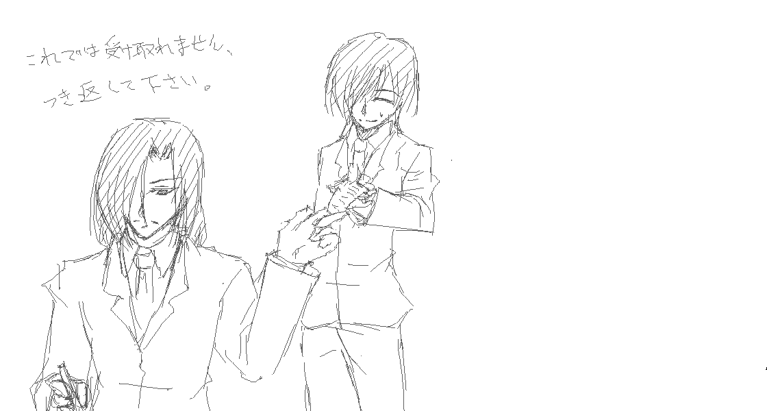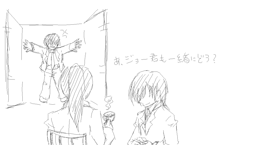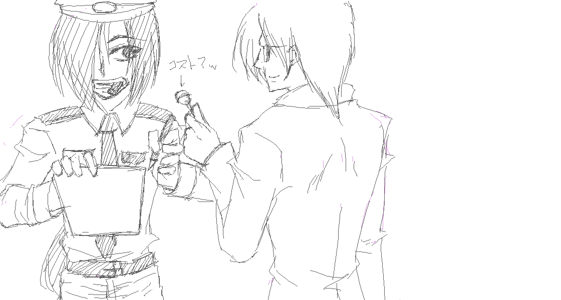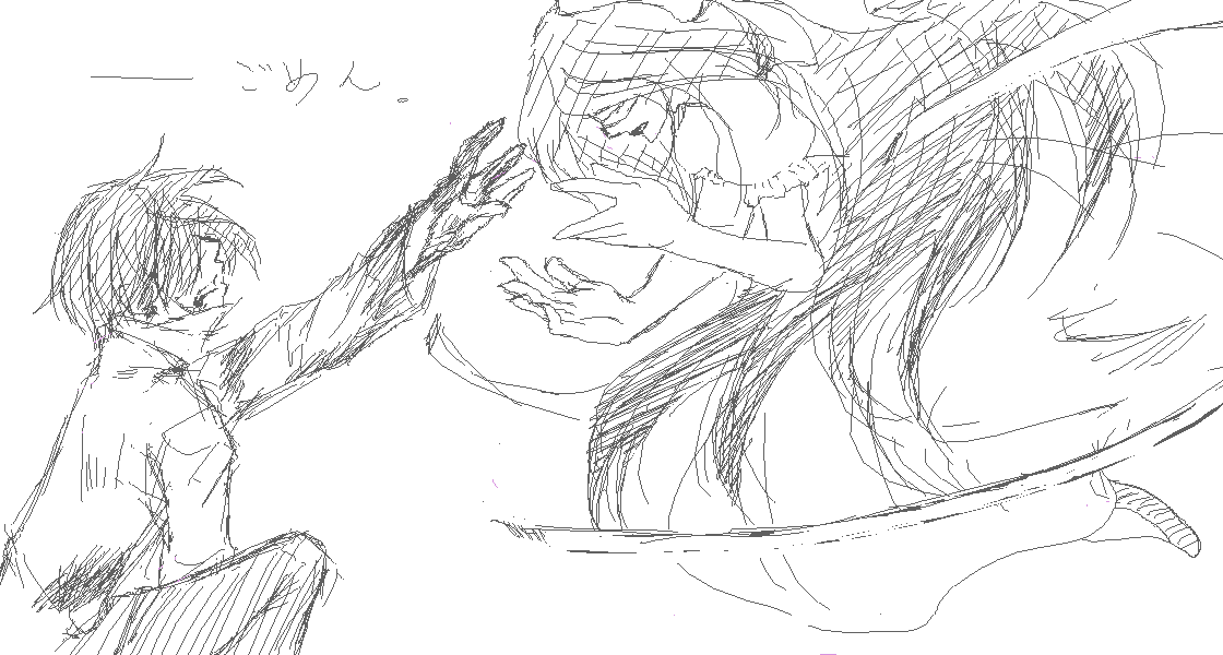 一番最初に描いたのがこれで、手がペンに慣れる前だから線がひどいw下書きを清書して下書きにしなおした感じ。