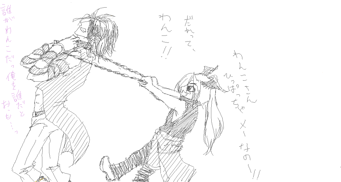 とりあえず、この段階で名前を教えてもらってなかったので、首輪と鎖で「わんこ」呼び。
